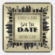 Pegatina Cuadrada Art Deco Guardar la fecha Champán Gatsby Glam