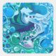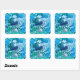 Pegatina Cuadrada Arte de fluidos de mármol digital azul y verde