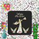 ¡A todos les encantan las pegatinas personalizadas para ocasiones, festivales, proyectos de bricolaje, manualidades! Les gustan estas divertidas pegatinas sobre todo porque son únicas y las han creado ustedes mismos. El cielo es el límite para su uso. La ilustración presenta un ángel dorado con trompeta y pájaros decorados con motivos florales en un entorno negro. El texto "Feliz Navidad" en el título se puede personalizar fácilmente.