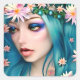 chica bonito con flores en su pelo azul. Hermosos ojos azules con piel pálida cuento arte de fantasía.