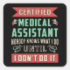 Pegatina Cuadrada Asistente médico certificado Médica Enfermera Funn