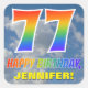 Pegatina Cuadrada Aspecto arcoiris "77" y "FELIZ CUMPLEAÑOS", nubes,