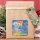 Este diseño pegatina vibrante, divertido y llamativo, con temática de cumpleaños, presenta un fondo de patrón celeste nublado, un gran número "7" y "FELIZ CUMPLEAÑOS", ambos con un patrón gradiente inspirado en el espectro multicolor del arco iris, y un nombre personalizado. Pegatinas coloridos y felices como este podrían ser usados cuando se dan regalos para envolver en celebración del sétimo cumpleaños de alguien. [~Z0000374]