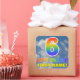 Pegatina Cuadrada Aspecto del arcoiris "6" y "FELIZ CUMPLEAÑOS", nub