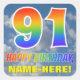 Este llamativo, emocionante y divertido diseño de pegatina con temática de cumpleaños cuenta con un fondo de patrón celeste nublado, un gran número de "91" y "FELIZ CUMPLEAÑOS", ambos con un patrón de gradiente inspirado en el espectro multicolor, y un nombre personalizado. Pegatinas divertidos y felices como este pueden ser usados cuando se envuelven regalos para celebrar el cumpleaños 91 de alguien. [~Z0000374]