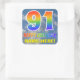 Pegatina Cuadrada Aspecto del arcoiris "91" y "FELIZ CUMPLEAÑOS", nu