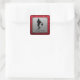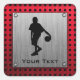 Pegatina Cuadrada Aspecto metalizado cepillado, básquetbol; rojo