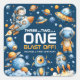 Pegatina Cuadrada Astronaut Cat Space Rocket Blast Off 1st Birthday