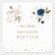 Pegatina Cuadrada Atractivo bautizo bautizo bautizo con flores azule