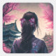 Computer generiertes Design einer Geisha in einem Kirschblüten Wald. Abbildung einer Frau mit einer hübschen Zopffrisur und Blüten im Haar welche einen Kimono trägt. Japanisches Design im AI Stile. Im Hintergrund zwei Japanische Gebäude.
