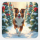 Pegatina Cuadrada Australian Shepherd Christmas Tree Farm Painting