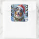 Pegatina Cuadrada Australian Shepherd Merle Winter Christmas Art