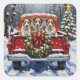 Pegatina Cuadrada Australian Terrier Christmas Red Truck Holiday