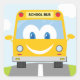 Un autobús escolar de aspecto alegre con cara sonriente. Este diseño parece realmente efectivo para estos Pegatinas