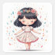 Pegatina Cuadrada Autocollant Fille Fleurie - Design Original