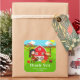 Este lindo y divertido pegatina de agradecimiento presenta un chica de pelo negro con una canasta de manzanas y un espantapájaros y cuervos. En el fondo hay un granero rojo brillante, una valla marrón, árboles, sol, calabazas y canastos de maíz y manzanas. El texto combina tipos de letra negrita y sans serif para un aspecto elegante y moderno. Esto es perfecto para una fiesta de cumpleaños con temática de otoño. Gráficos de MUJKA