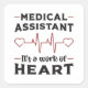Pegatina Cuadrada Auxiliar médico Médica de corazón Funny medicina
