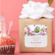 Pegatinas de productos de negocios con jabón o velas con una asombrosa fotografía del pequeño pájaro más lindo encaramado en una rama cubierta de flores rosas y hojas verdes. El pájaro tiene la cabeza azul y el cuerpo amarillo con una cara muy dulce. Adorable.