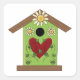 Pegatina Cuadrada Aves verdes con corazón y margaritas
