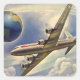 Pegatina Cuadrada Avión de época volando por el mundo en nubes