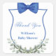 Pegatina Cuadrada Azul Bow Eucalyptus Escudo Baby Shower Gracias