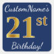 Pegatina Cuadrada Azul, Faux Gold 21st Birthday + Nombre personaliza