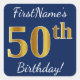Pegatina Cuadrada Azul, Faux Gold 50 cumpleaños + Nombre personaliza