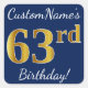Pegatina Cuadrada Azul, Faux Gold 63 cumpleaños + Nombre personaliza
