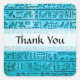 Un conjunto de pegatinas de cuadrado azul "Gracias" con jeroglíficos antiguos grabados en piedra. ¡Las palabras "Gracias" son personalizable!