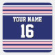 Pegatina Cuadrada Azul marino con franjas blancas rosadas Jersey