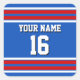 Pegatina Cuadrada Azul zafiro con franjas blancas rojas Jersey