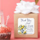 Amalfi Positano Vietri azulejos azules Majolica limones boda plantilla gracias a los pegatinas, manojo de cítricos de temática mediterránea azul con limones y flores en jarrón de cerámica azul favores de boda impresos pegatinas de favores personalizados