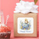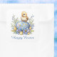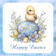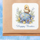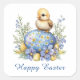 Pegatina Cuadrada Baby Chick Happy Easter Egg Blue Yellow Flowers