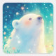 Pegatina Cuadrada Baby Polar Bear Gazing Up in Sunlit Meadow