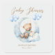 Pegatina Cuadrada Baby Shower Blue Teddy Bear Stars