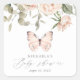 Pegatina Cuadrada Baby Shower Chica de mariposa floral rosa