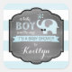 Pegatina Cuadrada Baby Shower de banda azul elefante con corbata