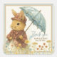 Colección de duchas para bebés de estilo rústico, decorada con colores suaves y una acuarela vintage de un lindo conejito con una sombrilla, en un estilo similar al de Peter Rabbit de Beatrix Potter.