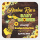 Pegatina Cuadrada Baby Shower de girasol amarillo ruso bebé