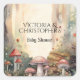 Pegatina Cuadrada Baby Shower de hongos con toadstool forestal encan