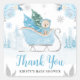 Pegatina Cuadrada Baby Shower de osito de invierno azul cúter acuáti