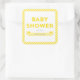 Pegatina Cuadrada Baby Shower de rayas amarillas modernas