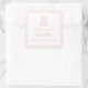 Pegatina Cuadrada Baby Shower elegante precoz de oso rosa claro