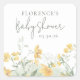 Pegatina Cuadrada Baby Shower Floral Amarillo Elegante
