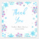Pegatina Cuadrada Baby Shower Morple and Blue Snowflakes Gracias