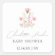Pegatina Cuadrada Baby Shower Sencillo Elegante Pequeño Flores Silve
