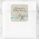 Pegatina Cuadrada Baby Shower Starfish and Ribbon Vintage