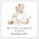 Una moderna y caprichosa panadería, panadería o etiquetas de productos de pastelería, con una pintura acuarela de panaderías, herramientas e ingredientes. Personalice su nombre en un tipo de firma de script moderno.