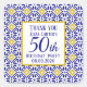 Baldosas portuguesas, azules, blancas y amarillas, Azulejo rústico, fiesta mediterránea de cumpleaños número 50 Gracias pegatinas. Personalízalo con tus detalles.