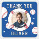Foto de cumpleaños temática de la pelota de béisbol azul gracias Pegatina de la plaza. Cumpleaños de béisbol personalizado gracias a pegatinas con foto y nombre personalizado.